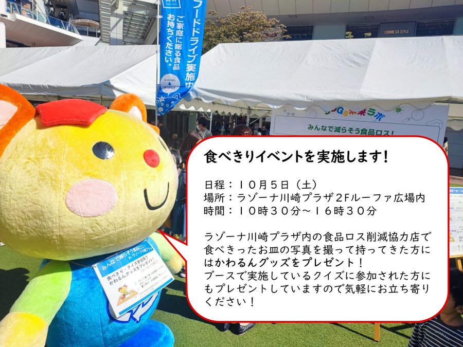 10月5日(土)に『やってみよう!SDGs inラゾーナ川崎プラザ』に参加します! #食品ロス削減 に関するクイズや #食べきり イベントを実施します!ぜひお立ち寄りください。 #10月は食品ロス削減月間 #川崎市 #ラゾーナ川崎プラザ