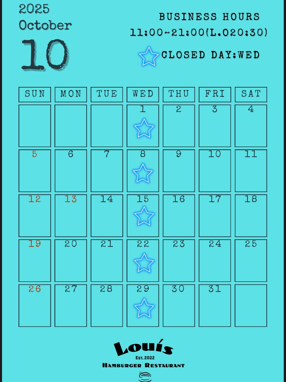9月も沢山のご来店ありがとうございました!10月も通常通り水曜日のみお休みです。期間限定の「秋刀魚チーズバーガー」も宜しくお願い致します!#ルイスハンバーガーレストラン#さんま#ルイスバーガー#チーズ..