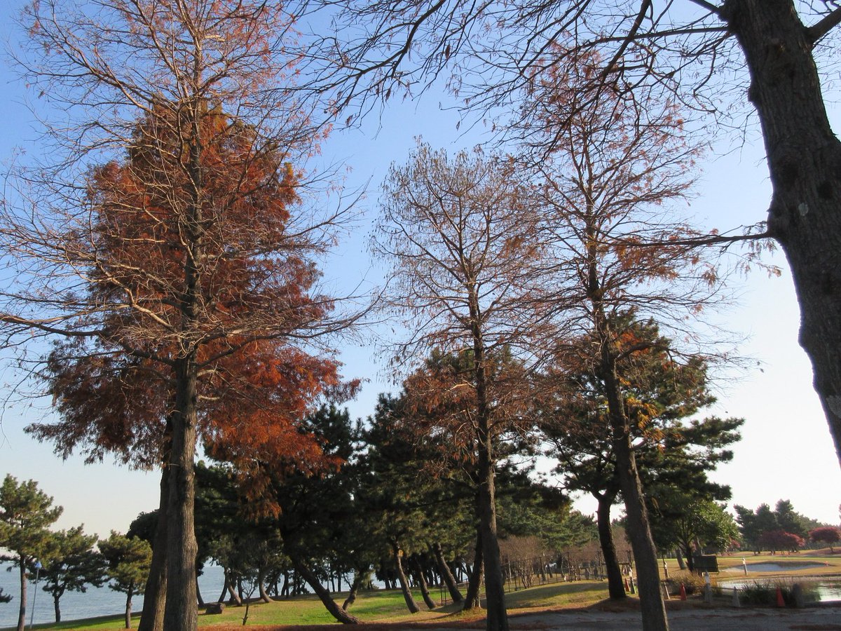 「メタセコイア」と「ラクウショウ」は一見しただけでは見分けにくいです('_') しかし、葉を見ると違いがはっきりします🍂 若洲にあるのは「ラクウショウ」です! #若洲海浜公園 #海上公園 #ラクウショウ