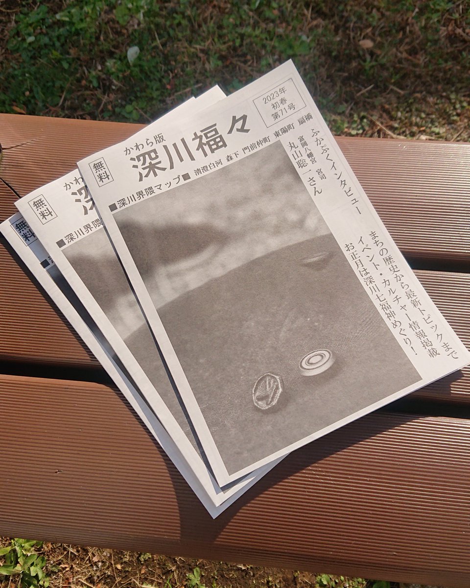 フリーペーパー「かわら版 深川福々」第71号(初春号)が発行となりました。深川の店舗や大江戸線清澄白河駅改札内、深川東京モダン館など50ヶ所以上に配布、設置します。まち歩きにぴったりな深川界隈マップ付..