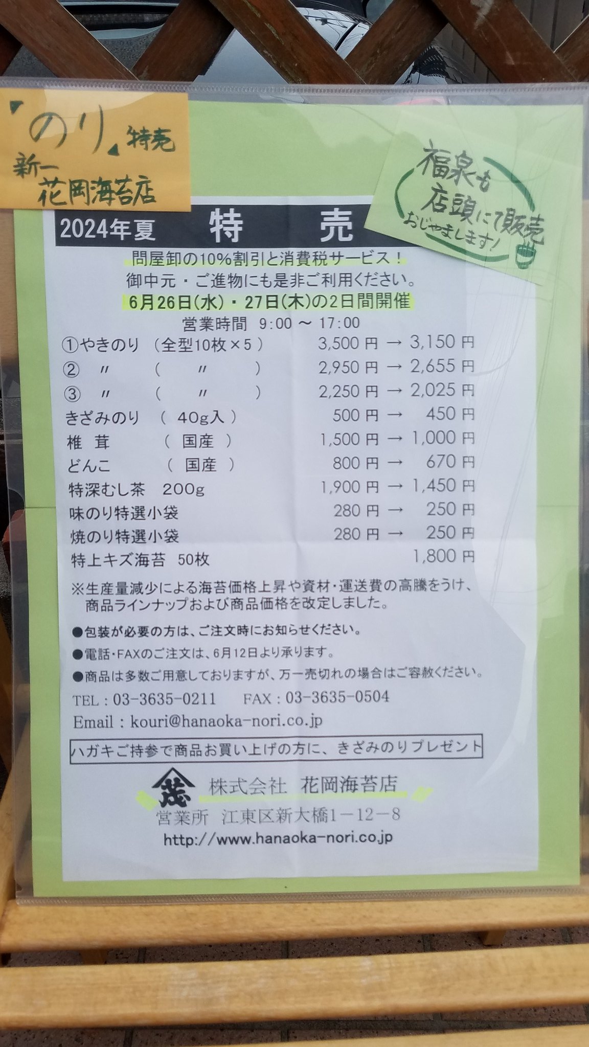 地元江東区新大橋にある#花岡海苔問屋屋さんの特売が6/26(水)と6/27(木)にあります#福泉茶店も一緒にお茶を販売致します#初出店#日本茶#fukuizumichaten@tokyofukuizu..