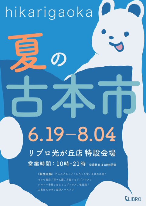 今日は暑かったですね。月曜定休日でお休みをいただき、光が丘夏の古本市の補充に行ってきました。栞やポストカードなど紙ものも色々でてました。光が丘駅から直結で行ける便利な場所です。こちらもよろしくお願いし..