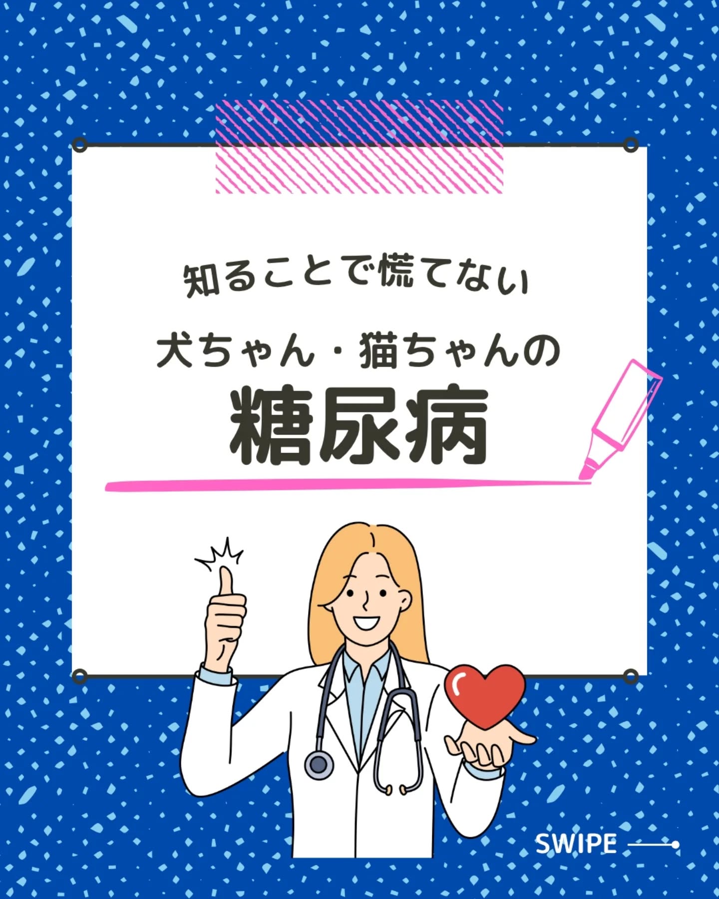 こんにちは!目黒洗足動物病院です🐾多飲多尿を示す病気は多くありますがその中の1つとして"糖尿病"があります。🐱🐶こんな症状がないかCheck☑・沢山水を飲んで沢山おしっこをする・沢山ごはんを食べるのに..