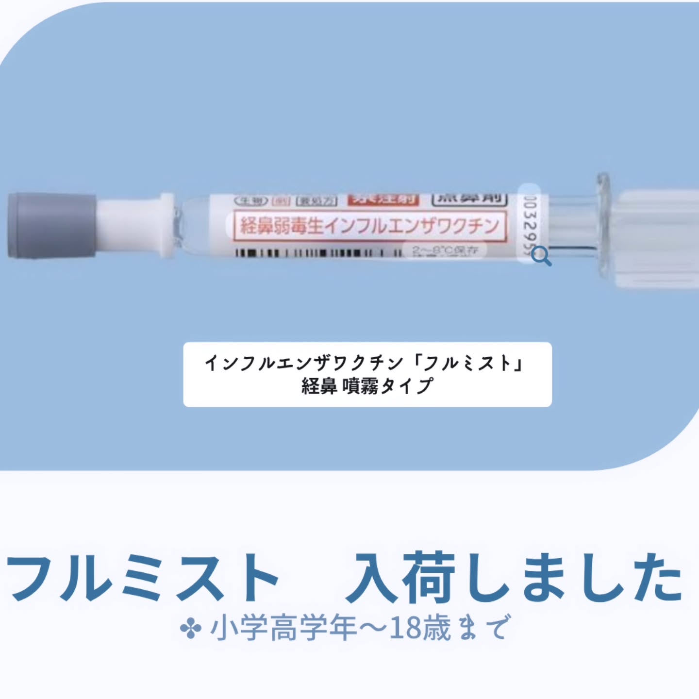 ·インフルエンザ予防ワクチン「フルミスト」経鼻タイプ入荷しました✨お電話にてご予約承り中です。☎03-34..