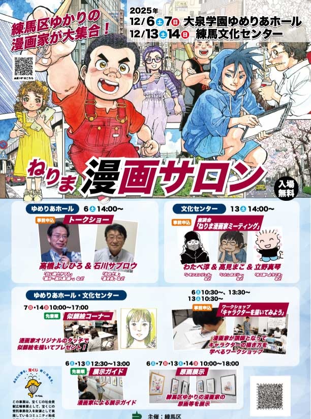ゆめりあホールで今年も漫画サロンが開催されます。漫画家先生のトークショー、イラスト展示や似顔絵を描..
