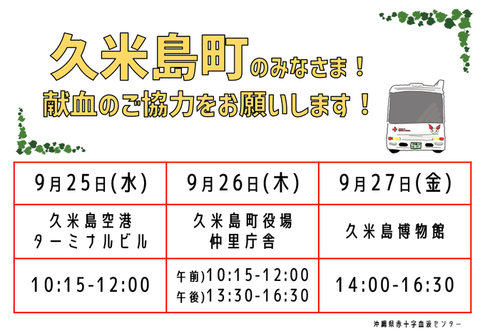 / #久米島町 のみなさーん #献血バス がやってきまーっす \ ぜひご協力をお願いします 一足先に #ラブラッド 会員には案内メールを、 非会員にはハガキをお送りしています #献血 #久米島で献血 #沖縄で献血
