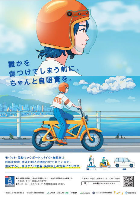 9月は自賠責PR月間!みなさんご存知ですか?自賠責保険未加入での#バイク#電動キックボード#モペットの運転は法令違反です。ステッカーの確認を忘れずに!!詳しくは↓https://mlit.go.jp/..