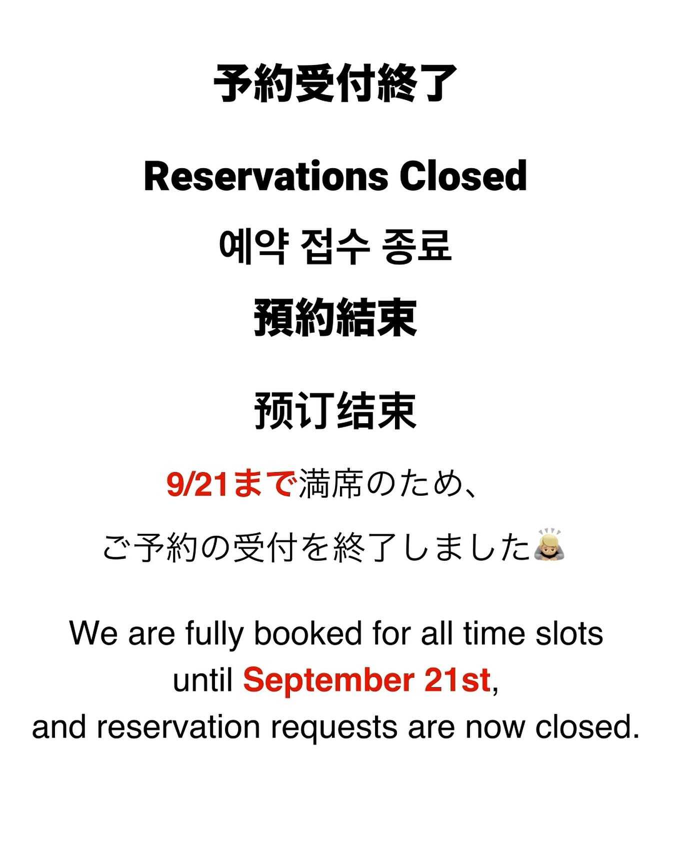 たくさんのご予約ありがとうございます😊9/21まで、全ての時間帯において満席のため、ご予約の受付を終了..