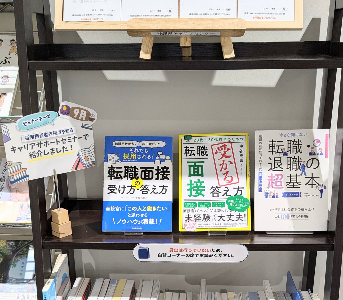 昨日9/18のキャリアサポートセミナー「採用担当者の視点を知る」で講師が紹介した本を、自習コーナーの書棚に置いています転職・退職後の再就職に向けた準備や、面接の心構えにオススメです。★閲覧用のため、利..