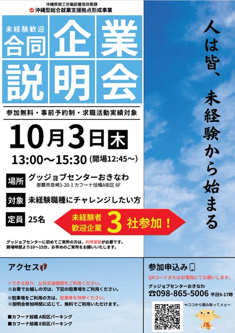 / 合同企業説明会のお知らせ \ 安心してください。未経験でも大丈夫! 一見、資格や経験が必要そうな業種でも未経験のあなたを歓迎する企業が集結します さらに!企業のホンネやぶっちゃけ話が聞けるトークディスカッションもお申し込みはお早めにー!