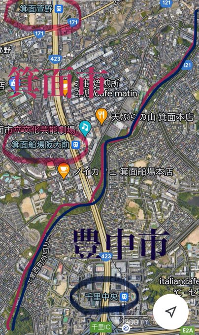 北大阪急行が今年延伸し、上島一彦市長候補(現職)が更なる整備を進める船場周辺。建設が進んでいる高層マンション群が建てば当然一気に人口は増加します。※北大阪急行延伸前は青の丸で囲んだ千里中央駅まででした..