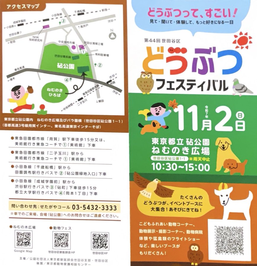 【どうぶつフェスティバル】#高橋昭彦 今年は11月2日に開催!世田谷区どうぶつフェスティバル 地元のあみ動物病院で案内チラシ #赤堤 #あみ動物病院 #動物フェスティバル #高橋あきひこ #世田谷区議会