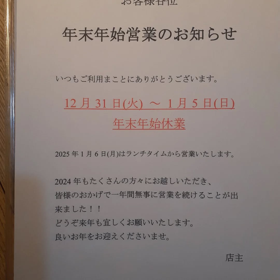 臨時休業のお知らせ明日12/24は臨時休業とさせて頂きます🙇ご予定されていた方、大変申し訳ありません。ご..