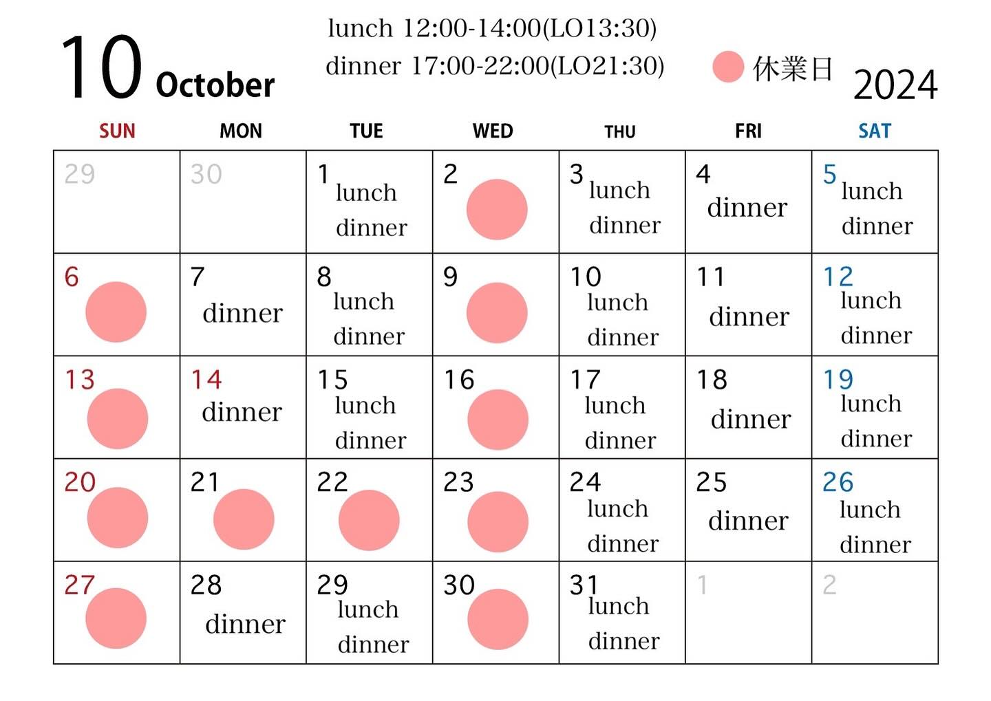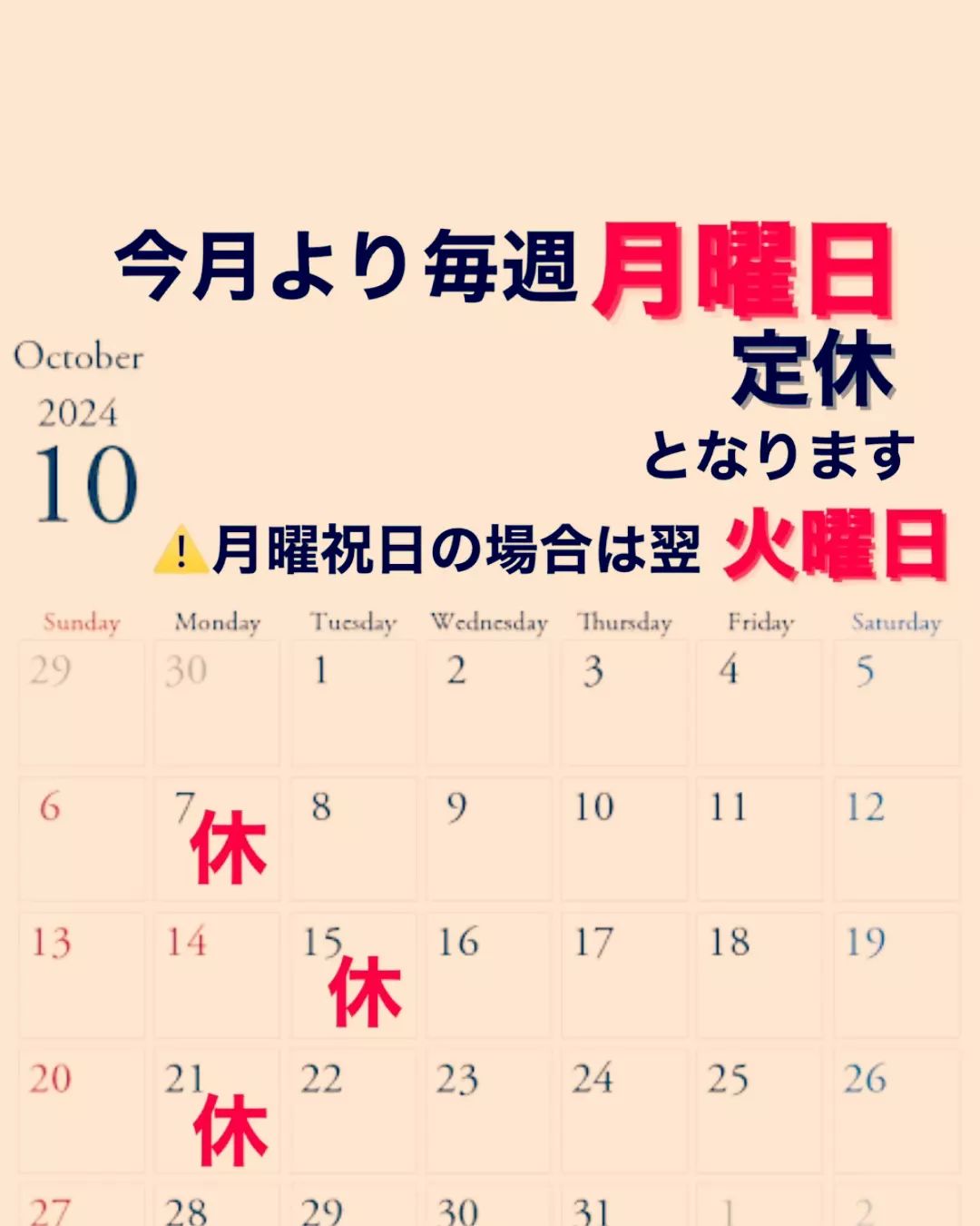 おはようございます9月も終わりですね。今年もあと3ヶ月‼️⁉️えっ❓という感じです。10月の営業予定。後ほどきちんとあげますが、とりあえず明日10/1火曜日お休みとなります。直前になって申し訳ありませ..