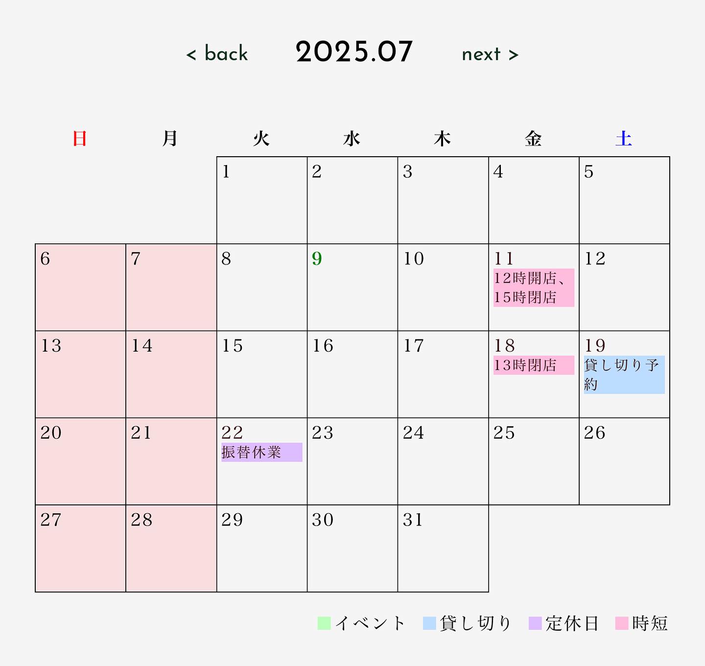 7月のスケジュール🗓7/11(金)店内都合により12:00開店15:00閉店となります🙌7/18(金)店内都合により13:00閉店となります💦7/19(土)終日貸し切り営業となります🥺ご理解、ご協力の..