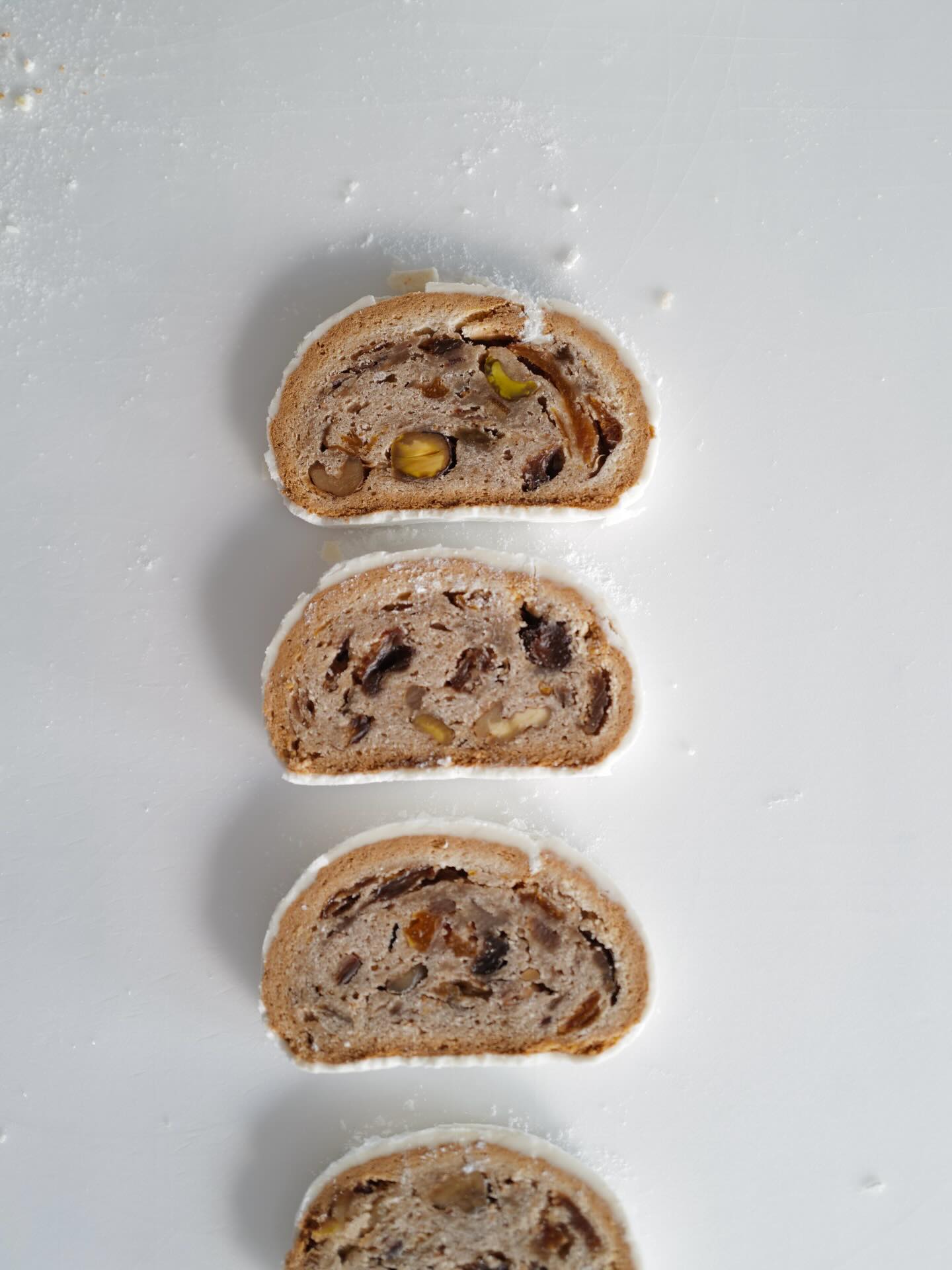 StollenauMARCDEBOURGOGNEマールドブルゴーニュのシュトーレン今年もクリスマスシーズンの特別なお菓子の製造を始めました。Equalでは、ドライフルーツの種類に応じて適切なカットをひ..