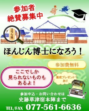 \参加者大募集/ほんじん博士になろうここだけの学びや体験を通して、草津や本陣のことをもっと知ってみよう!「ほんじん博士」認定時にはプレゼントもとき初回10/25(土)10:00~11:30対象市内小学..