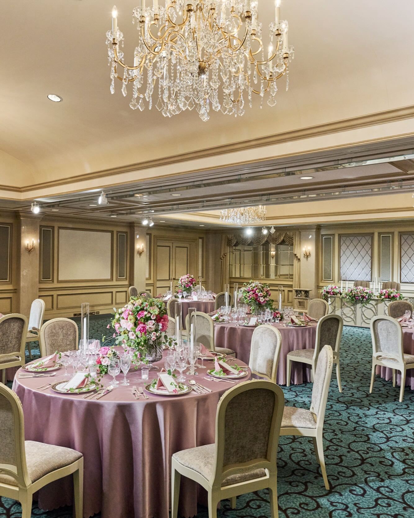 エメラルドカラーとやわらかなシルクブラックで統一された空間で、エレガントなパーティを。披露宴会場「..