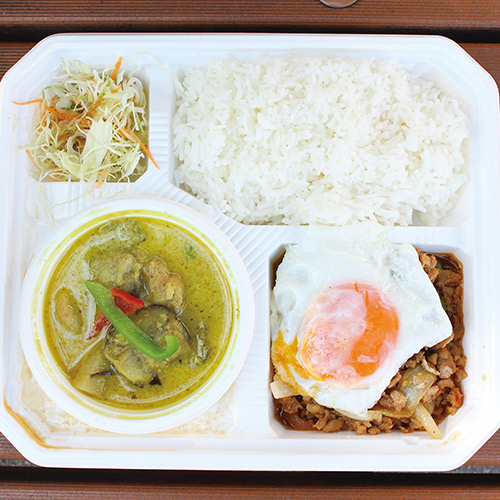 人気の2種類がセットになった、ピリ辛ガパオと具だくさんのグリーンカレーの “ガパオ&グリーンカレー弁当”をもちかえり♪