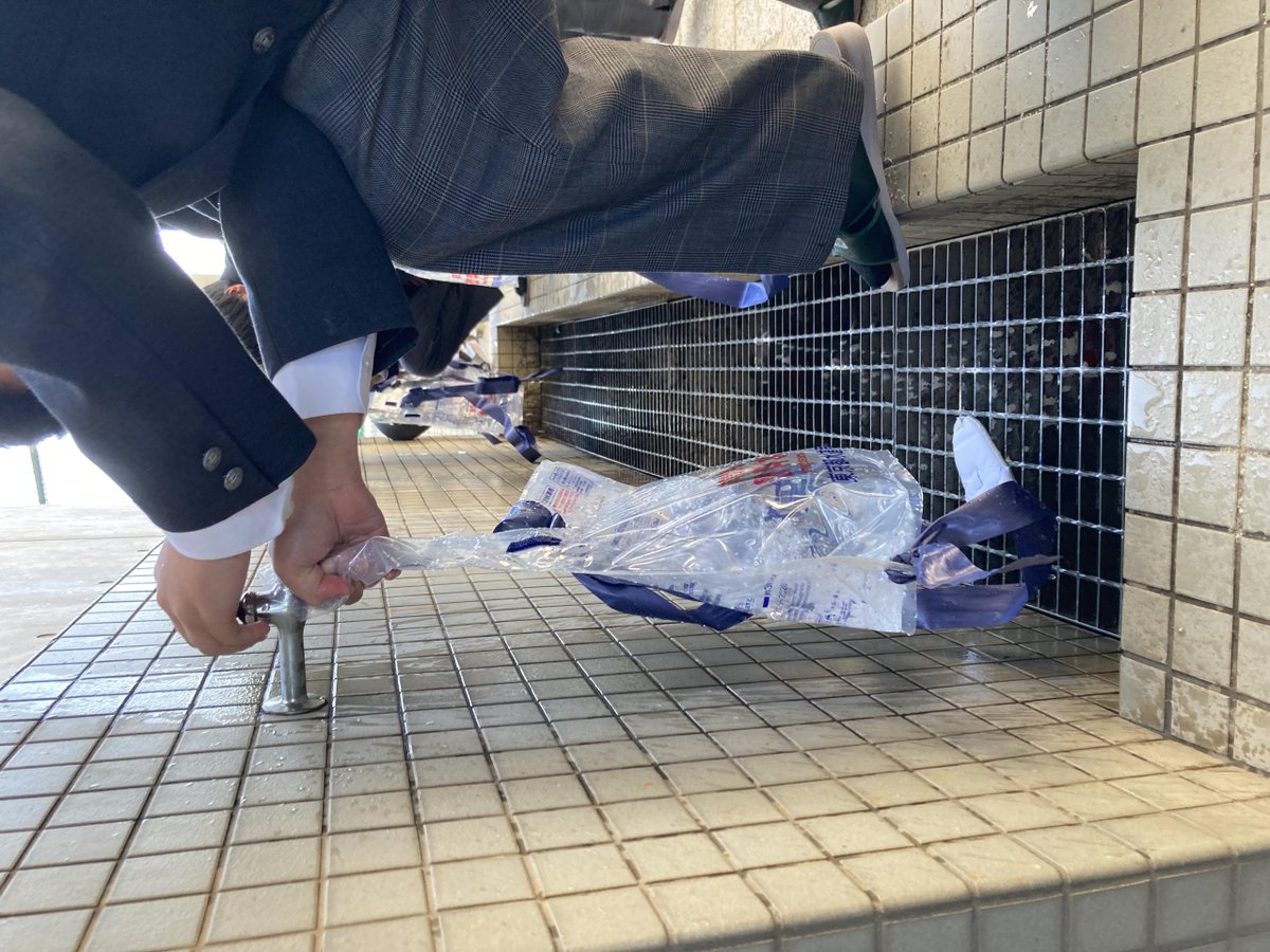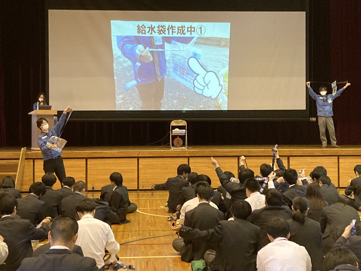 (水道局)11月8日、都立田無工科高校で、災害時に断水した時の水の確保の仕方を学んでいただく断水体験を実施しました。実際に給水袋を作成し、水の運搬も体験していただきました。給水袋への給水は大変ではなかった、それほど重くないことが分かったとの声がありました。ありがとうございました!