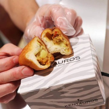 ピロシキ好きは集まれ〜!トレンドベーカリーは〈ケンタウロス〉。俵型のミニサイズのピロシキですが具はたっぷりで、もちもちの生地がギュッと詰まった具の旨味を包みこんでます!7月2日まで。