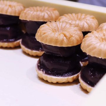 ツヤツヤあんこがたまりません!店頭で手際よく作られていたのは今め菓子出店中の〈青柳正家〉の「菊最中」。◇7月9日(火)まで