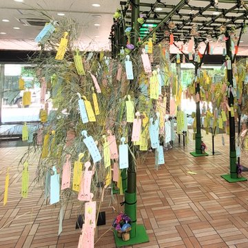 【飯田橋ラムラ七夕飾り】毎年人気の七夕飾り。今年も多くの皆様にご参加いただいています。願い込めた短冊を見ると気持ちが優しくなりますね。お願い事がまだの方は、竹回廊で願い事を短冊に書いてみませんか。お買..