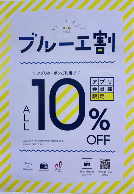 【マルシェドブルーエプリュス】ブルーエ割ALL10%OFF開催中!!!店舗・オンラインストアどちらでも使える割クーポンをプレゼントしています♪期間中新規会員登録していただいた方も、クーポンがご利用いた..
