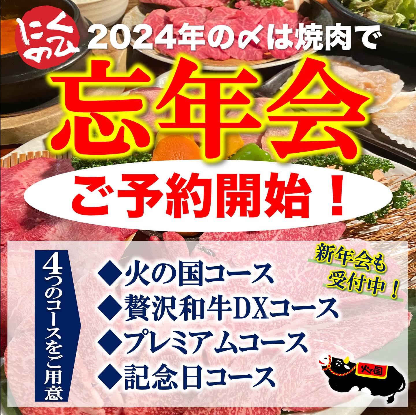 皆様‼️今年もあとすこしですね〜もう忘年会のご予約はお済みですか???なんと‼️火の国では4つのコースをご用意いたしました🐮🔥◆火の国コース(お一人様)5,000円(5,500円)◆贅沢和牛DXコース..