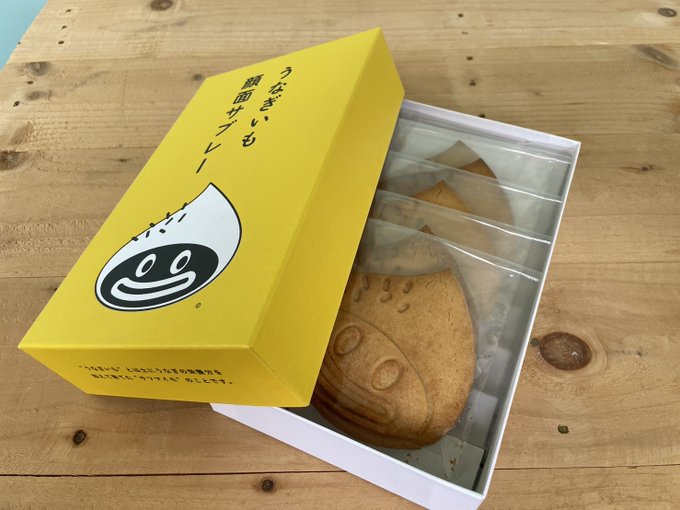 ご好評いただいておりますうなぎいも顔面サブレーうなぎいも(サツマイモ)約50%使用香料、着色料不使用!うなぎいもシェイクと交互に食べると最強!