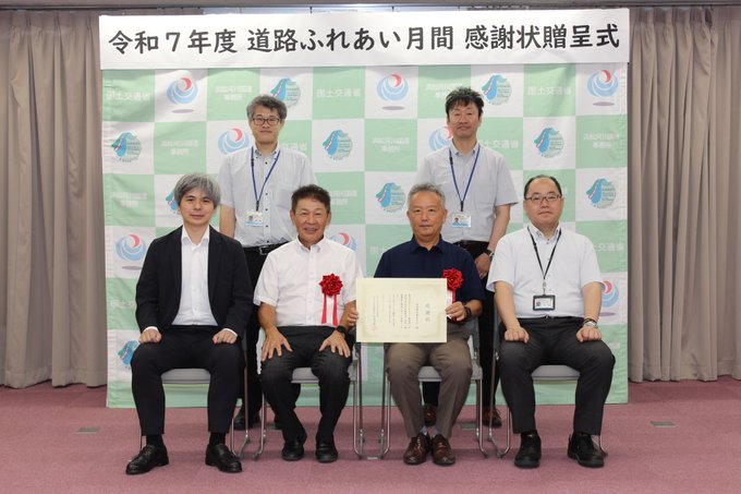 日頃より、道路の美化活動にご理解とご協力いただき、誠にありがとうございます。 令和7年8月20日、長年にわたり国道1号の美化活動をされている西遠建設株式会社に、事務所長より感謝状が贈呈されました。 引き続き、道路の正しい利用をお願いいたします。