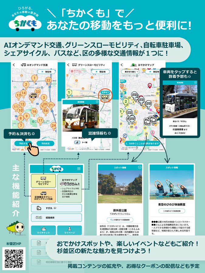 /杉並区産MaaS「#ちかくも」一部サービス内容を更新\〇ユーザー登録が任意でより手軽に利用〇#すぎ丸一部の民間路線バスの現在の走行位置が確認可能に〇#区営乗合タクシーは前回利用した履歴が自動表示詳し..
