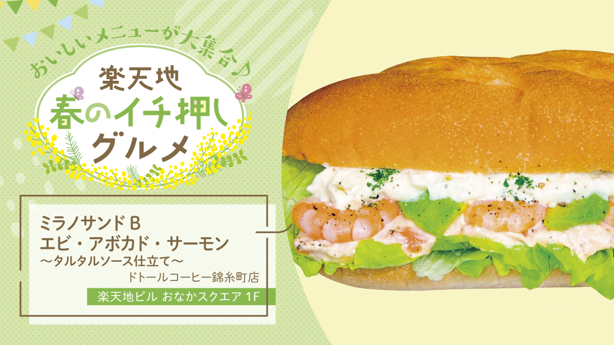 ˗ˏˋ🌸#楽天地冬のイチ押しグルメ🌸ˎˊ˗本日ご紹介するメニューは…✧ミラノサンドBエビ・アボカド・サーモン ~タルタルソース仕立て~✧590円(税込)✧ドトールコーヒー錦糸町店¦おなかスクエア1階定..