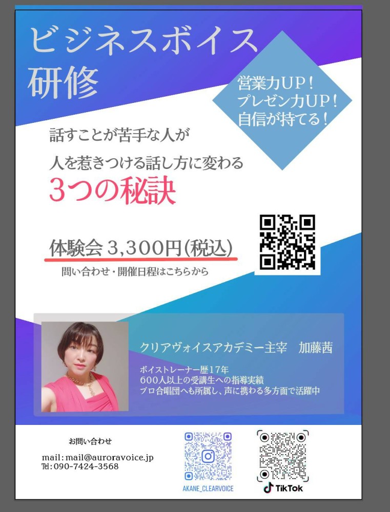 ビジネスボイス研修もしているので是非ご参加ください。