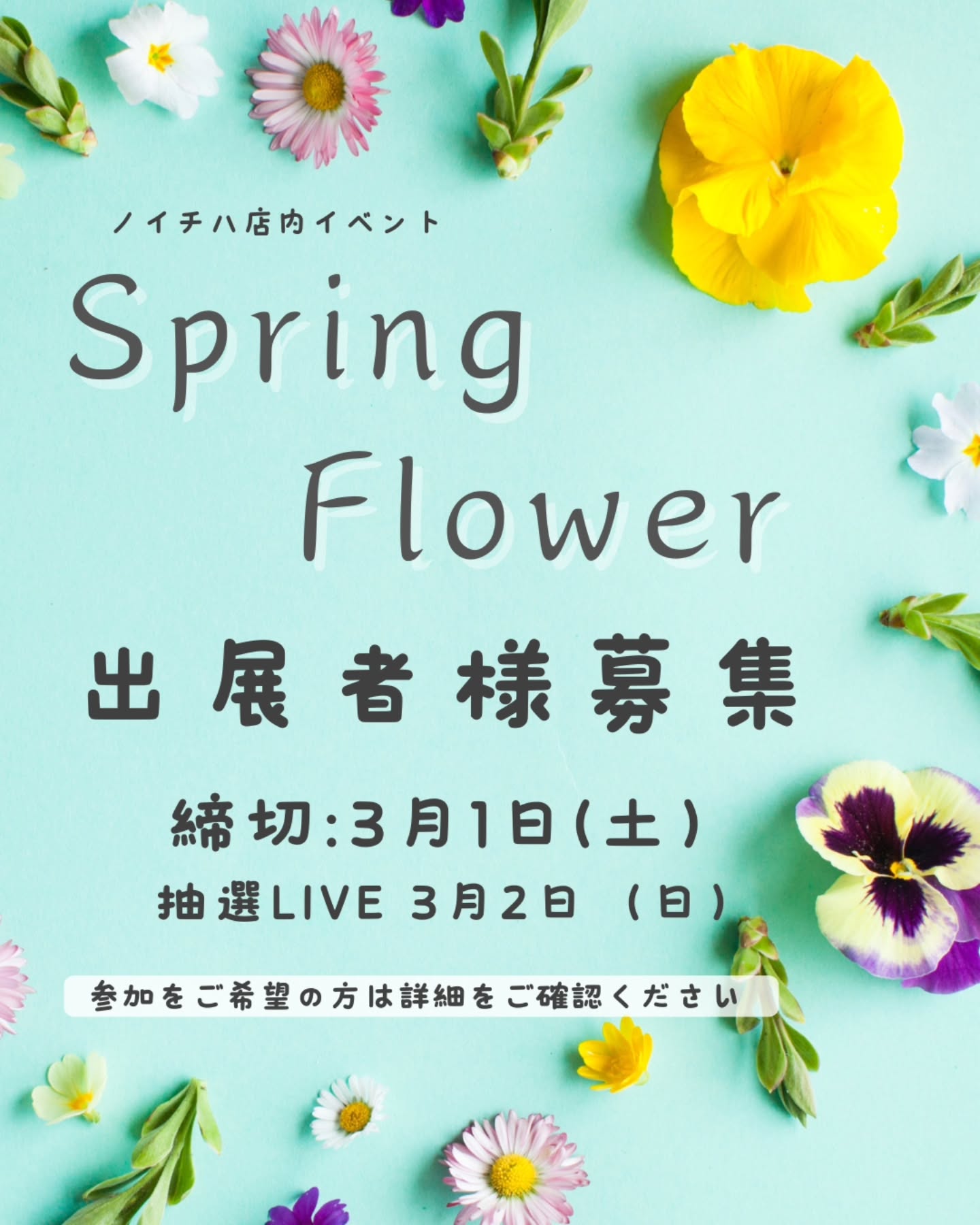⋆͛📢ノイチハ🌿店内イベント出店者様募集📢⋆『🌼SpringFlower🌼』春はお花いっぱいの季節🌼桜はもちろん春のお花いっぱいのイベントを開催します✨ちなみに…今年の桜予報は3/25らしい🌸ウェ..