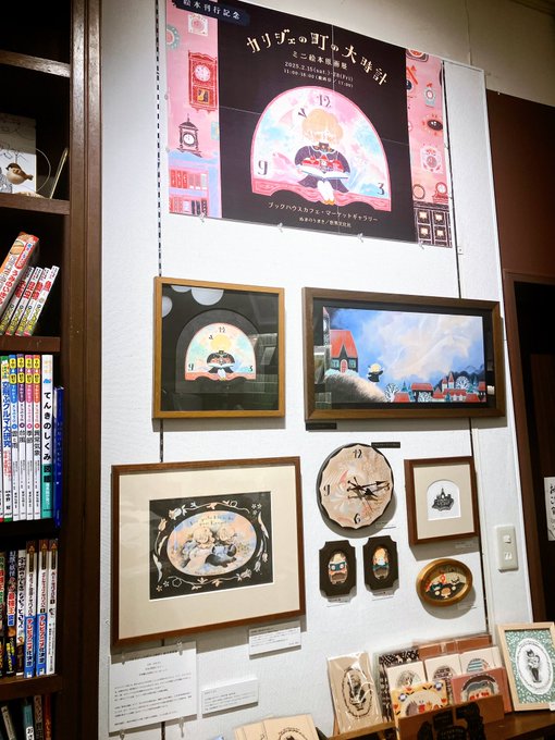 ブックハウスカフェのマーケットギャラリーでは、ぬまのうまきさんの『カリジェの町の大時計』ミニ原画展を開催中。絵本原画の他、描き下ろしの小さな作品、さらに時計のオブジェも展示されています。2/28まで、..