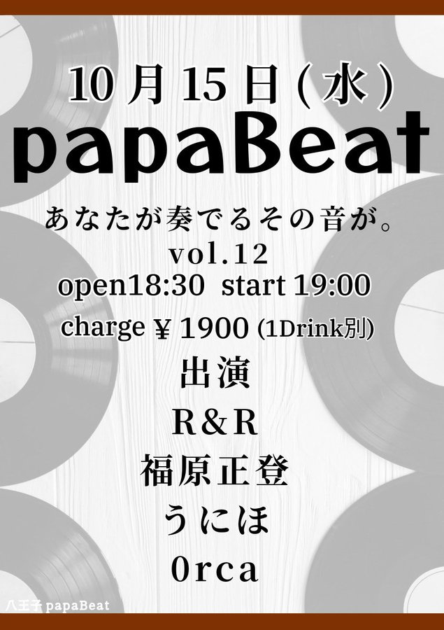 本日は「あなたが奏でるその音が。vol.12」となります。パパビートでは平日弾き語りメインですが今日はバンド2組に弾き語り2組な賑やかな夜にジャンル、年齢関係なく素敵な音を奏でてゆきます☆そんなライブ..