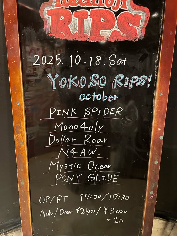 2025.10.18YOKOSORIPS!octoberPINKSPIDERMono4olyDollarRoarN4AW.MysticOceanPONYGLIDEOP/ST17:00/17:30Adv..
