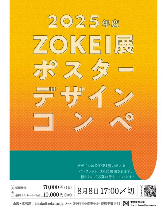 \\今週末〆切//2025年度ZOKEI展(卒展)ポスターデザインコンペの応募〆切は8月8日(金)の17時まで東京造形大学の在学生or卒業生の方はどなたでもご応募いただけます詳細はプロフィール欄のリン..