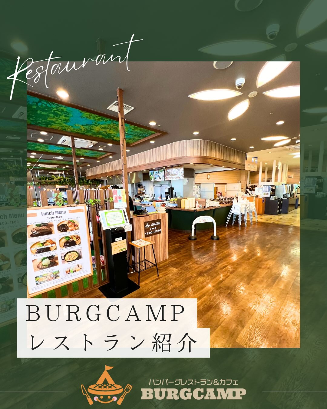 ⛺BURGCAMP紹介🍖BURGCAMPは、家族でキャンプ気分を楽しめるアウトドア風レストラン🏕BIGBOX東大和の中にあり、気軽に非日常を体験できます✨✧ポイント✧⛺テント席やテラス席でキャンプ気分..