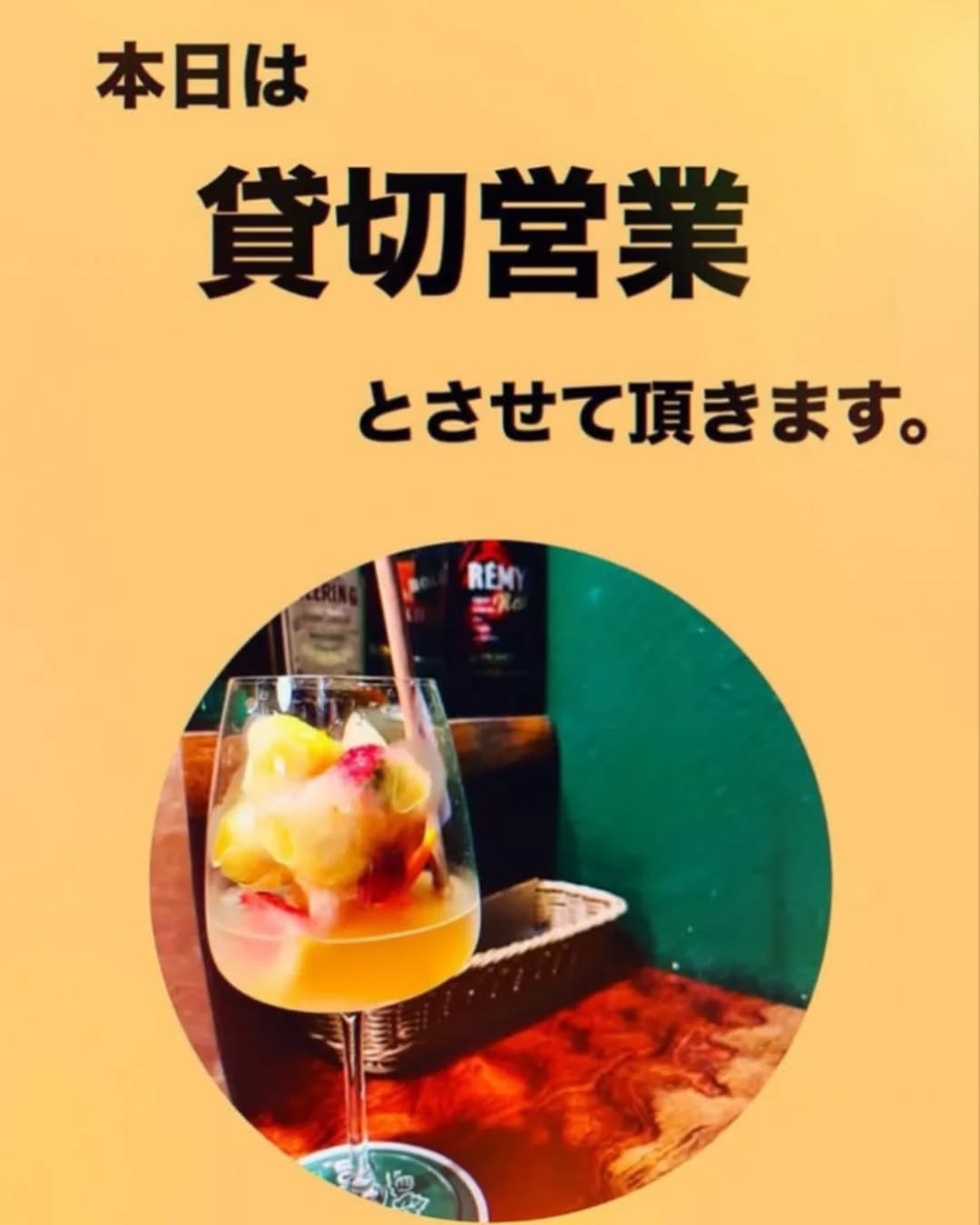.本日は貸切営業とさせて頂きます。ご来店予定のお客様、大変申し訳ございません。またのご来店をお待ちしています。