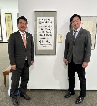 「第50回記念町田市民美術展」が本日22日から3月2日まで、町田市立国際版画美術館で開催されています。小生も書道で出品。今の思いを書かせていただきました。町田市書道連盟星大輔顧問と作品の前でつらくて悲..