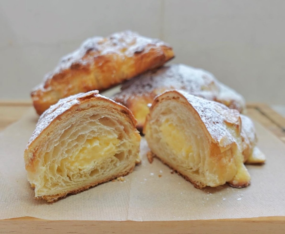・こんにちは。パン工房シマです🍞クロワッサンアマンド175円焼き上がり10時クロワッサンにカスタードをサ..