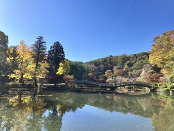 快晴の#薬師池です池周辺のいちょうやもみじがとても綺麗ですホットドッグやコーヒーなどのキッチンカーも出店しています明日15日からライトアップも始まります。園内も賑やかになりそうです。詳細はこちらhtt..
