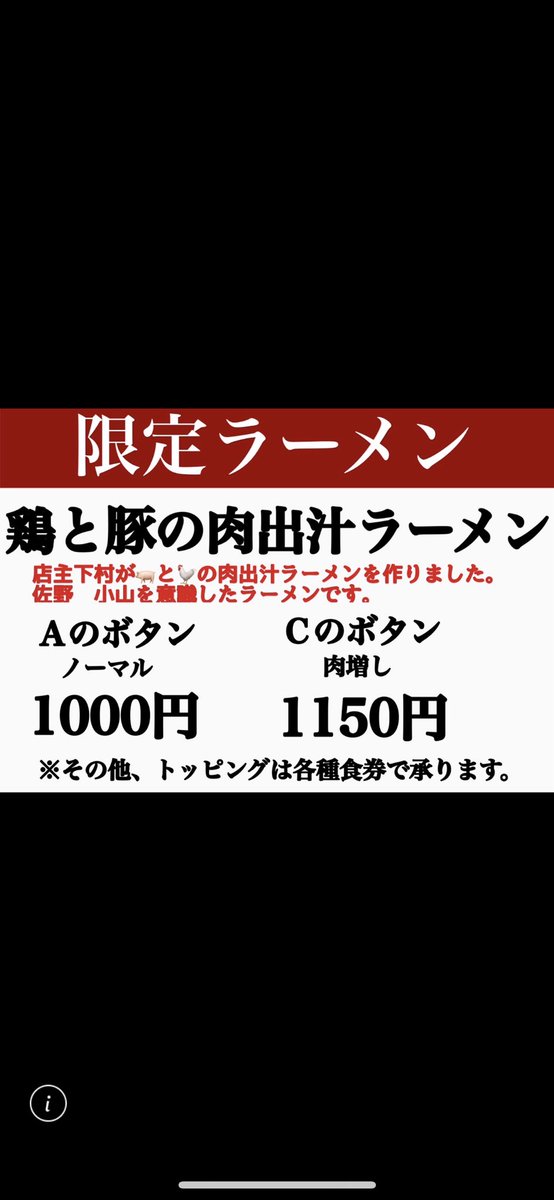 こんばんは『鶏と豚の肉出汁ラーメン』たくさん作ったのでぜひご賞味下さい油そばに合うニラキムチトッピングも販売中です。24時まで元気にお待ちしております。