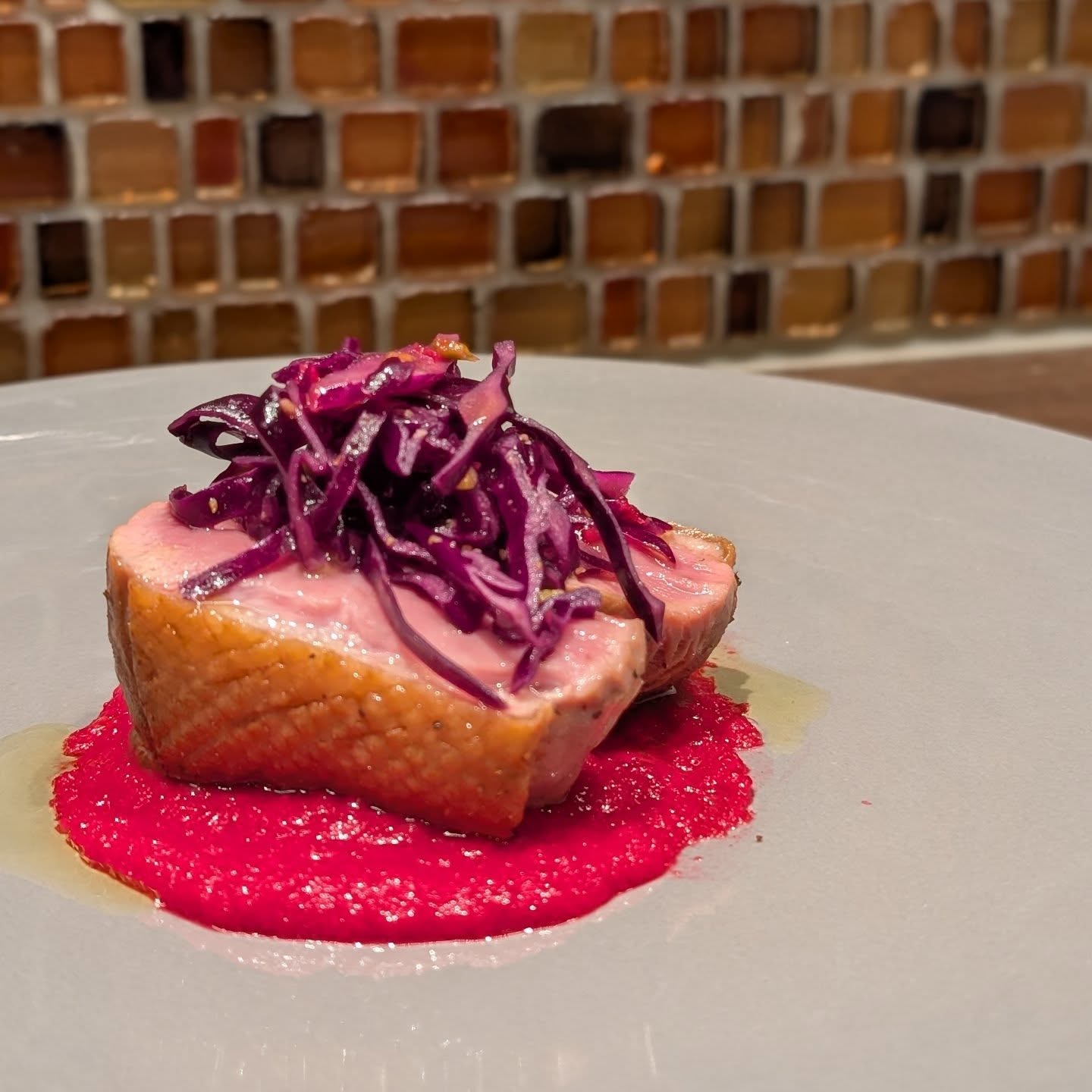 4月24日(水)〜4月29日(月)までのランチメインです!"合鴨のグリルビーツとマスタードのソース"なんともエキゾチックなお皿!ビーツとマスタードのソースは見た目に反して優しさがあります…鴨の旨味にな..