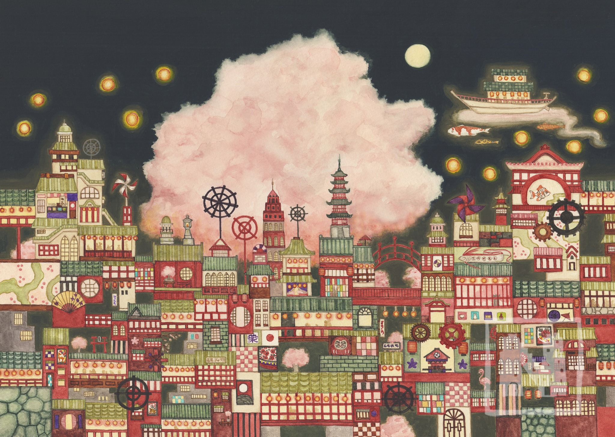 「夜桜幻楼」不思議な国の大きな桜の周りに建てられた都。夜になると幻想の街並みが浮かび上がります。ˏˋ『空想街雑貨店』吉祥寺本店ˎˊ˗11:00~19:00東京都武蔵野市吉祥寺本町2丁目34−10˗ˏˋ..