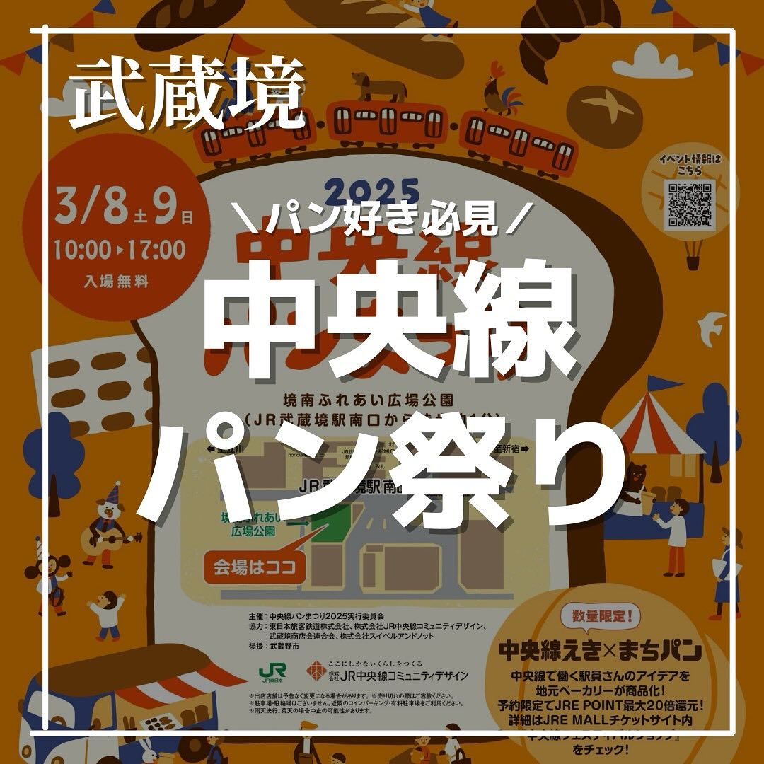 3/8~3/9の2日間、大人気パンイベント『中央線パンまつり』が武蔵境で開催🥐🥖例年1万人を超える人々が楽しむパン好き必見イベント。6回目となる今回は、中央線沿線のベーカリーを中心に、焼き菓子やパンの..