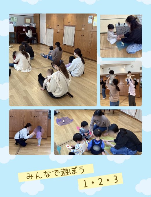 2月の「みんなで遊ぼう1・2・3」は、講師の先生を招いて親子でリトミックを楽しみました♪シフォン布を使って「いないいないばぁ」。細い紐は、ヘビに変身。お花のマラカスは、枕やハンドルに変身‥など。初めて..
