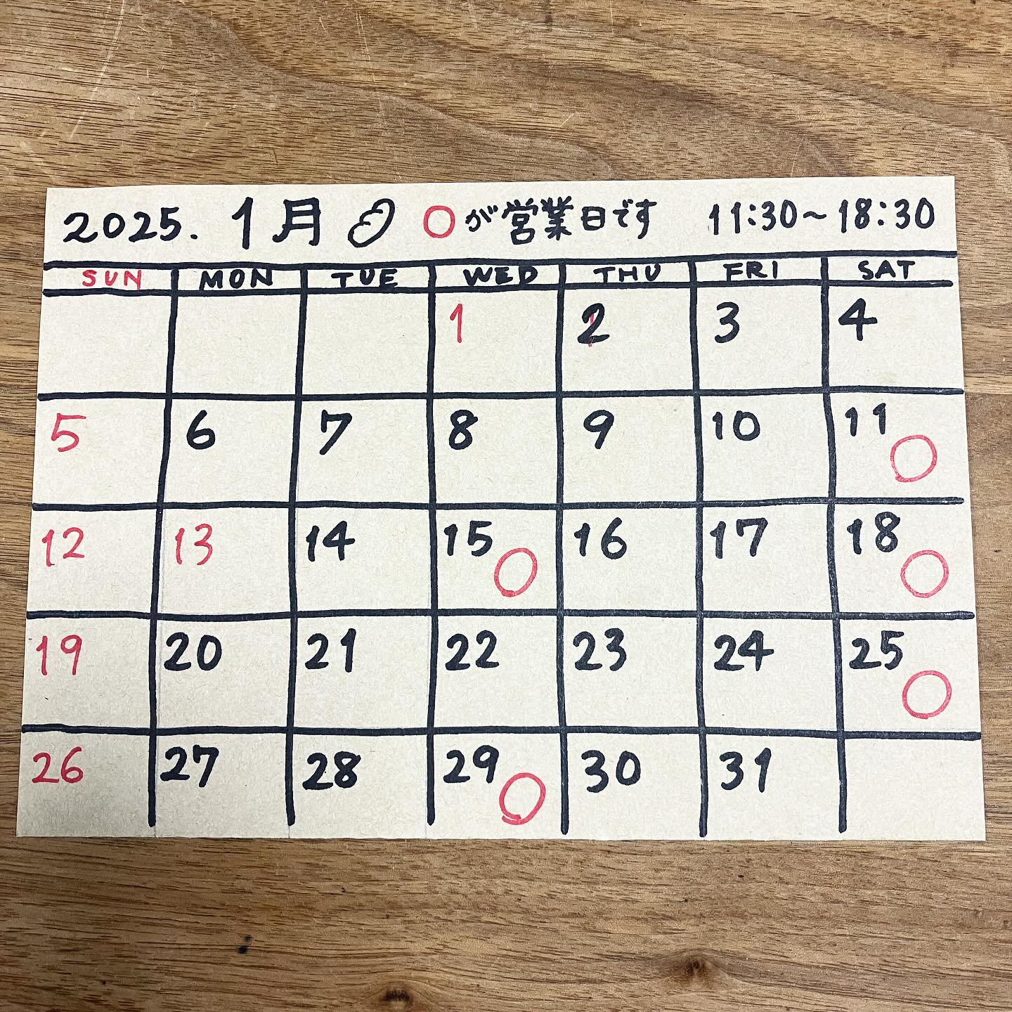 1月の営業日カレンダーです。本年もどうぞよろしくお願いします。11日(土)は本年最初の営業日です!主人..